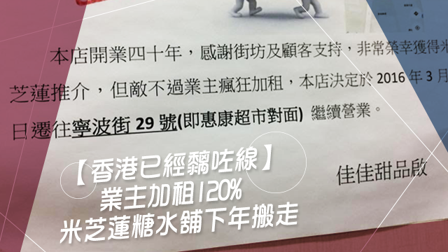 之前米芝蓮推薦咗23間香港街頭小食店,呢間喺佐敦嘅糖水舖都榜上有名,點知事隔幾個月,呢間舖頭就畀業主瘋狂加租,由月租10萬加到去22萬,足足有120%呀!