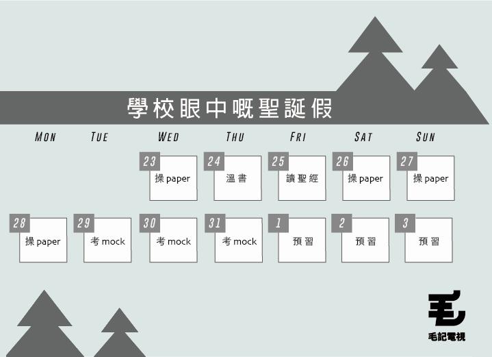 雖然啲校規係嚴啲,不過學校都係一片苦心,for your own good啫阿仔,毛毛作為好孩子,一早幫學生哥plan好聖誕假時間表㗎喇……就係日日溫書溫書溫書溫書溫書溫書……