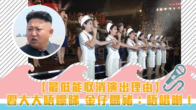 有「北韓少女時代」之稱嘅牡丹峰樂團同朝鮮功勳國家合唱團本身話會喺北京演出三日,表演內容都係相當令人期待嘅《祖國讚歌》、《朝鮮勞動黨萬歲》等等啦。 本身仲有幾個鐘就開場,台又搭晒飛又送晒,點知呢個時候竟然無啦啦要取消個show呀! 金仔本身好想習大大嚟睇,點知人哋唔去喎,就係咁金仔話唔制呀唔制呀唔制呀唔唱呀唔唱呀而家唔唱呀,於是成團人就即刻去機場飛返北韓嚕~ 唔好嬲豬啦金仔,可能係習大大係因為夫人唔畀佢睇女仔所以先嚟唔呢。 金仔今次突然玩走人,有報導話中國即刻喺中朝邊境增兵?,嗱乖下金仔,嬲還嬲唔好拎枱面粒飛彈掣嚟玩呀! 圖片來源:新華網、博文社、每日焦點