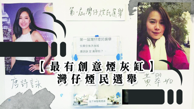 最近喺灣仔有個第一屆灣仔煙民選舉,畀大家用神聖嘅煙頭投票揀黃翠如定唐詩詠呀!其實都幾難揀下喎,翠如bb就gfable,詩詠bb就愈嚟愈有女人味……嗚呀,毛毛都係食兩支煙投晒兩個啦唯有!
