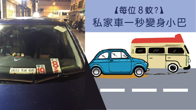 呢架私家車車頭擺咗幾個小巴價錢牌同目的地牌,唔通想做白牌?!驚唔驚畀慈母話你呀?