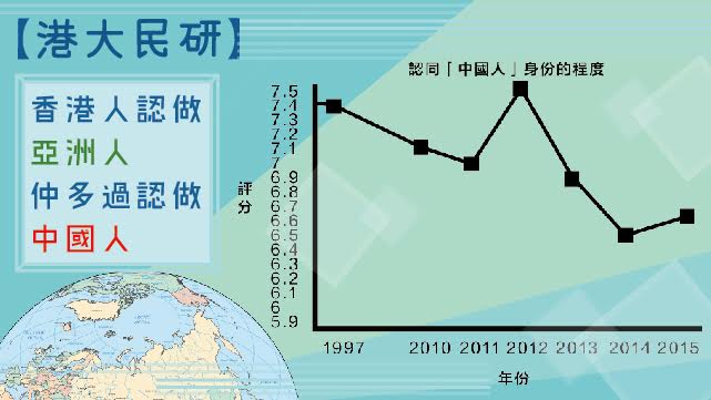 如果有人問你,你係「香港人」、「中國人」、「中國的香港人」,定「香港的中國人」呀?最多人會答自己係廣義嘅香港人呀!話自己係中國人嘅就得18個percent咋陰公~
