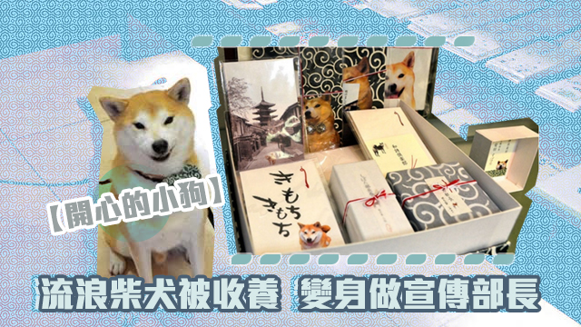 咪睇佢笑得咁開心,見牙唔見眼咁,其實佢以前係流浪狗嚟㗎!好彩有呢間賣和紙嘅舖頭收留佢,仲將佢變身成宣傳部長柴田Subaru,推出埋有佢個嘜頭嘅產品,聽講仲好好賣?!