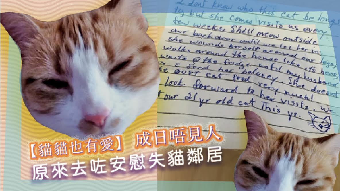 張紙唔係Nala自己寫,係有個人寫咗放喺貓貓度帶返屋企嘅~原來佢係去咗一個啱啱失去咗隻21歲愛貓嘅鄰居度,安慰人哋呀。Nala去到人哋屋企門口,會係咁喵喵叫,到鄰居開門畀佢入屋,佢就當正自己屋企咁行嚟行去~好似知鄰居掛住走咗嘅貓貓,就特登過去陪人哋咁呀。