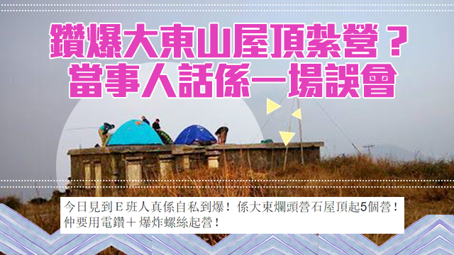 噚日(1月6號)facebook group「香港初級行山之友」有網民post咗幾張相,話見到班人用電鑽同爆炸螺絲喺大東爛頭營石屋頂起咗5個營,覺得佢哋「自私到爆」!