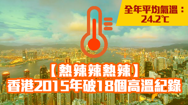 2015年仲破咗百幾年嚟18個高溫紀錄。不過呢啲紀錄一啲都唔威威,仲好令人擔心。老套都係咁講啦,一人做多步,環保啲,愛護地球啦。