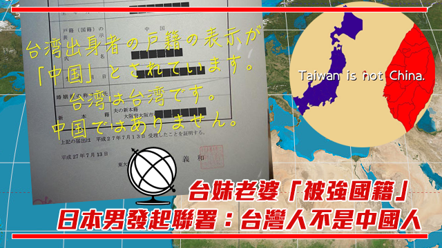 資料來源:台湾出身者の戸籍を中国から台湾に改正を、聯署專頁