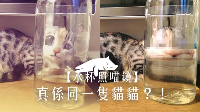 點知……換個角度睇…… 竟然變咗個大叔!個樣仲要係(-_-)咁樣樣。喂喂喂,到底是咪真係同一隻喵嚟㗎?毛毛用個水杯照妖鏡,呀唔係,照喵鏡就睇清楚你真面目!成日扮萌呃罐罐食呀嗱?