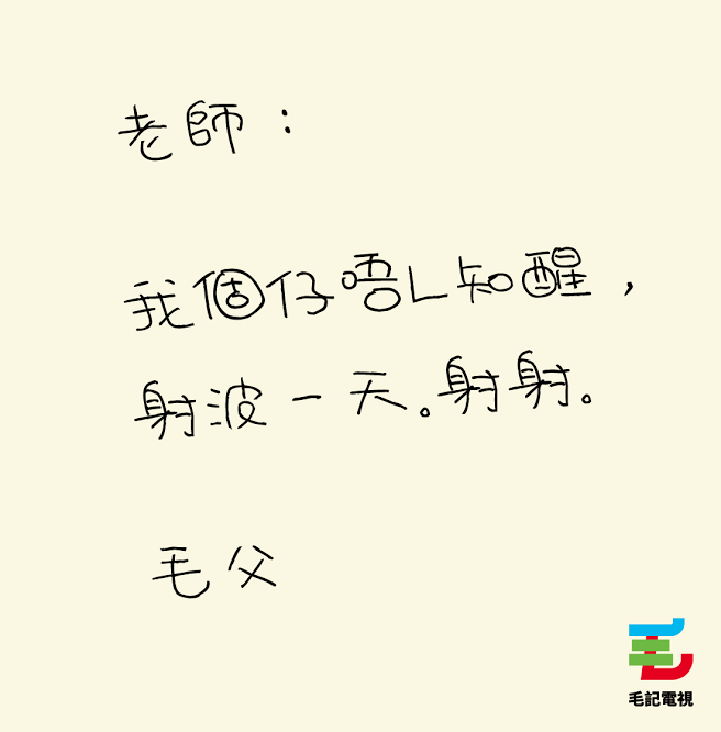 Daddy你中文咁好,會唔會連老師都唔明你寫咩㗎……畀著毛毛個老竇要幫毛毛寫請假信,應該會係咁……
