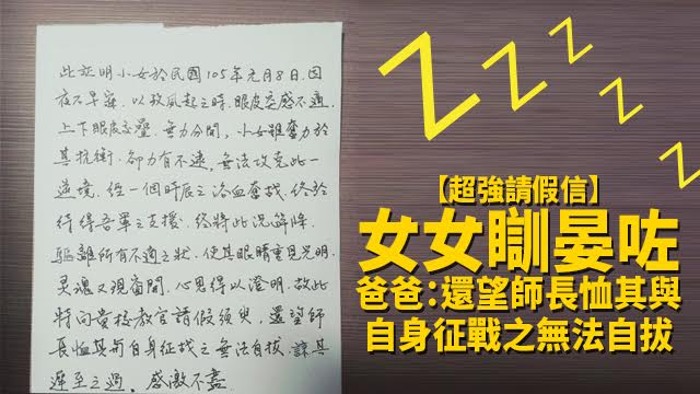 老老竇竇,如果毛毛都有個咁正咁玩得嘅老竇,咪唔使咁7囉…… 呢個daddy見乖女唔知醒,唔單只冇叫佢即刻返學操paper,仲幫佢寫埋封超強請假信!