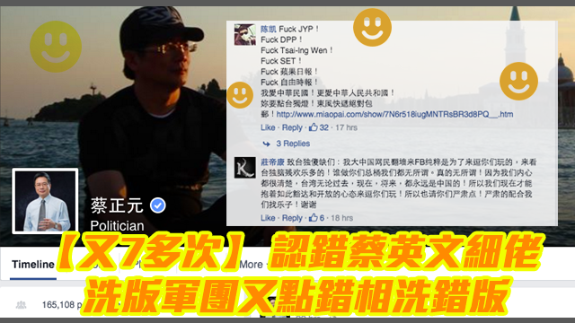 前兩日班洗版軍團先揮軍盪失路去錯謝Lemon個page,今次冇啦啦又有人話蔡正元係蔡英文嘅細佬,呢班義勇洗版軍又再次義無反顧咁去到facebook嘅戰場上面作戰喇!毛毛真係睇到都覺得好滾動呀! 於是乎,佢哋就衝晒去蔡正元個page度洗版,查實蔡正元係國民黨㗎,唔好話親姐弟,黨友都唔係呀! 唔止去搵錯人,佢哋仲連page都去錯埋,誤攻咗娛樂版,小編竟然咁好耐性教佢哋去。呢班洗版軍團真係好幽默,講搞笑毛毛真係差好多皮,你睇吓佢哋幾咁趣緻~ 毛毛用人類嘅智商已經解釋唔到點解呢班友可以咁鬼風趣,做咩啫佢哋?!! 圖片來源:聯合新聞網、蔡正元、三立娛樂星聞