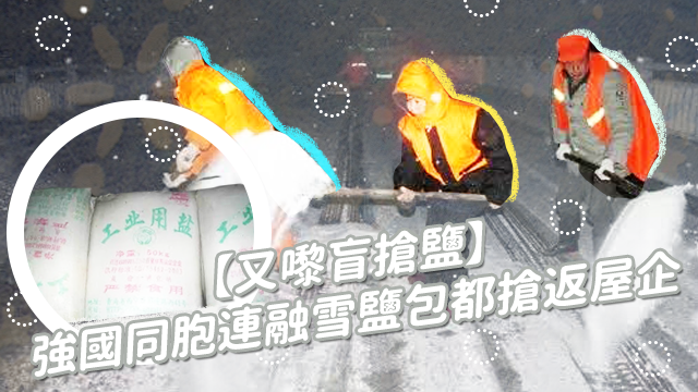 浙江政府驚落大雪會影響交通,就擺咗好多融雪鹽包喺橋頭做應急物資。點知咁都畀同胞們搶晒返屋企呀冇陰公……咩喎,河馬唔馬呀?融雪鹽包都係鹽!