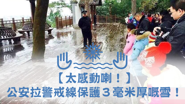 可能為咗令到啲雪可以擺得耐啲,等啲小朋友又開心啲,好叻叻嘅強國公安就專登拉起咗條警戒線,唔畀啲人入去破壞啲足足有三毫米咁厚嘅雪呀!真係用心良苦!