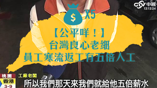 呢個唔願上鏡嘅低調好老細係開工廠嘅,啲員工多數都上咗年紀。佢就係知道呢種天氣返工好辛苦,所以就特登出多五倍人工,諗住獎勵下佢哋囉!成班員工知道咗之後都即刻大讚老細好呀!
