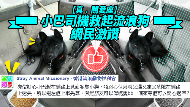 好彩個司機笨冇粗心大意,救返一條寶貴嘅生命咋!佢之後仲喺架小巴度整咗個「狗仔關愛座」,餵埋嘢食畀佢,真係又細心又有愛心!細細聲話你知吖,其實毛毛……真係好鍾意咁可愛嘅大家㗎,hehe!
