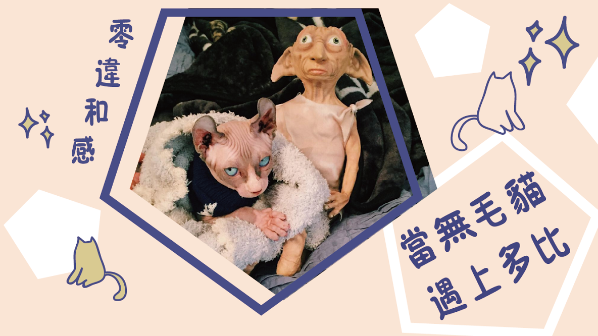 呢隻貓奴一養就兩隻無毛貓,睇嚟佢堅係好鍾意呢隻貓喎!呀咦,睇真啲,原來有一隻係《哈利波特》入面隻Dobby嚟㗎!無毛貓貓唔知係咪見Dobby同佢差唔多樣,所以一見鍾情攬到佢實一實呢?