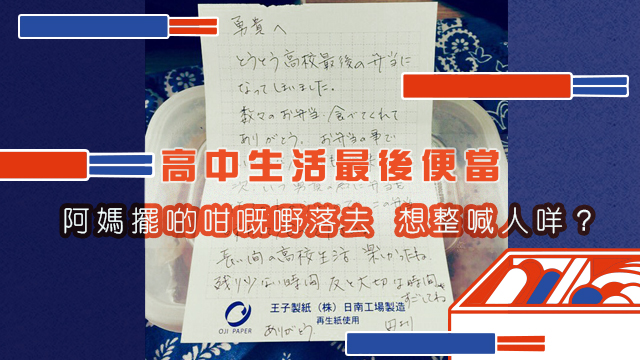 又到咗last day嘅季節!仲記得毛毛中學個last day,成班同學仔喺度講埋晒啲懶感性嘅說話,搞到毛毛都差啲喊出嚟!而日本有個高中生最近都喺last day嗰日感動到想喊喎,而派洋蔥嘅竟然唔係同學仔,係每日為佢整便當嘅阿媽?!