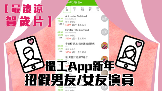 新年來來去去都係食團年飯呀拜年呀見下班親威咁,唔少得嘅仲有年年劇情都一模一樣咁滯嘅賀歲片呀,今年有人喺搵工app度post招聘廣告請演員?喎。