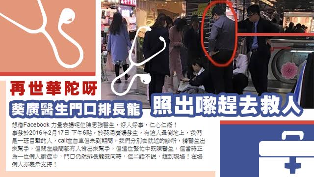 真係人間有愛呀,呢位繁忙醫生唔理可能會被門口排晒長龍嗰班病人噓爆嘅可能性,都衝去現場救人,呢啲咁有醫德嘅醫生真係買少見少,十足再世華陀咁款呀!