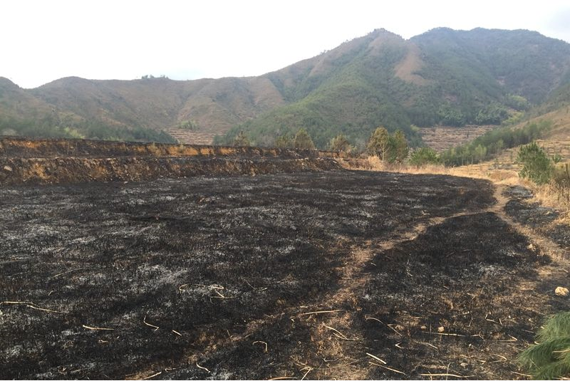 佢仲話自己燒完山之後趕住著草,搞到隻腳整親喎!哎呀乜咁陰公豬呀?毛毛係話座山呀!你睇下,全部嘢燒晒,毛都唔多條!毛毛隔住個mon睇都覺得心都痛埋呀!