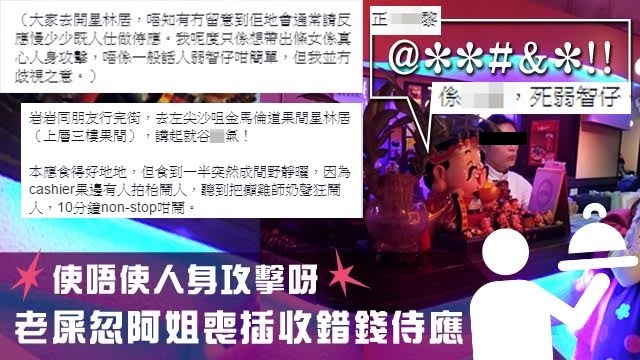 其實個侍應哥哥say咗梳ly,仲話肯負返責任?,已經好過正苦啲膠官多多聲啦,冇咩事出返去繼續做嘢咪算數囉,點知個阿姐仲要不停鬧不停鬧,仲用粗口加人身攻擊?,人哋收錯錢啫,又唔係搞到你媽媽,使唔使問候人哋媽媽咁好禮貌呀~