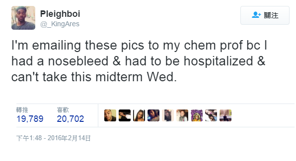 扮病嚟講呢,毛毛以為自己都算勁,由打電話返公司請假嗰一刻開始就瘋狂chok聲勁咳,奧斯卡直頭應該要頒返個獎畀我。之不過今日毛毛終於都遇上對手喇,呢個美國學生竟然出動埋高科技道具嚟扮病逃避考試呀!