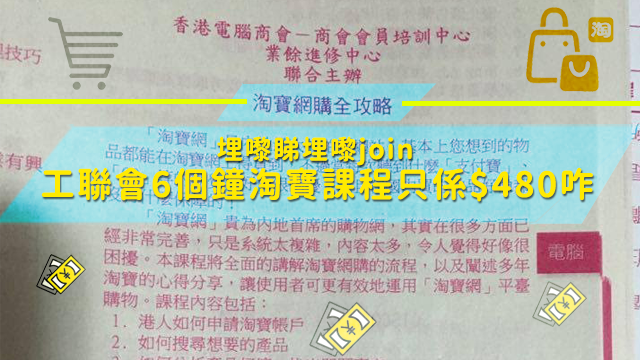 睇落個課程內容都幾豐富喎,搞到毛毛都有啲心動?!嘩,乜原來學淘寶都要畀480蚊咁貴嘅喂?咪即係要成$80一個鐘?嗚嗚,毛毛一個鐘都未必有$80人工呀……不過諗落$500有找呢個價錢都算相宜啦,之前有個學飛時卜嘅課程收人五嚿幾水?呀!