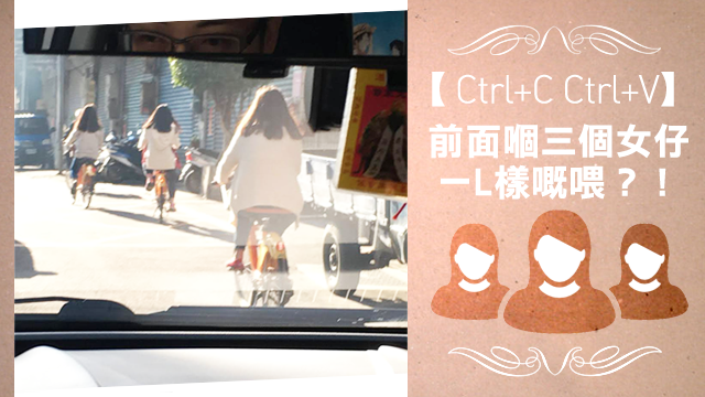 可能因為毛毛24小時都要望實個facebook啦,所以啲視力好似愈嚟愈差咁......就前日咋嘛,毛毛竟然見到腦細笑喎,仲使問嘅,一定係眼花啦!而今日都有位台灣網民同毛毛一樣,覺得自己眼花,佢話揸揸下車嘅時候,竟然見到前面有三個一模一樣嘅妹豬呀!