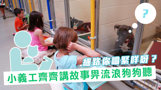 嗱,呢班小朋友唔係貪得意先同狗狗傾計㗎,佢哋係參加咗個義工計劃,負責講故仔畀狗仔聽,等佢哋冇咁驚人之餘,仲順便訓練埋小朋友嘅朗讀技巧,真係好有意義呀~