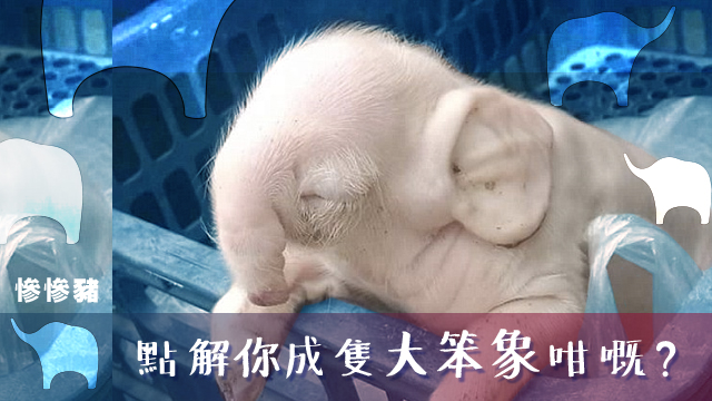 佢除咗有個象鼻象耳之外,兩隻眼都擘唔開,而且手手腳腳都出現異常,真係好慘慘豬!