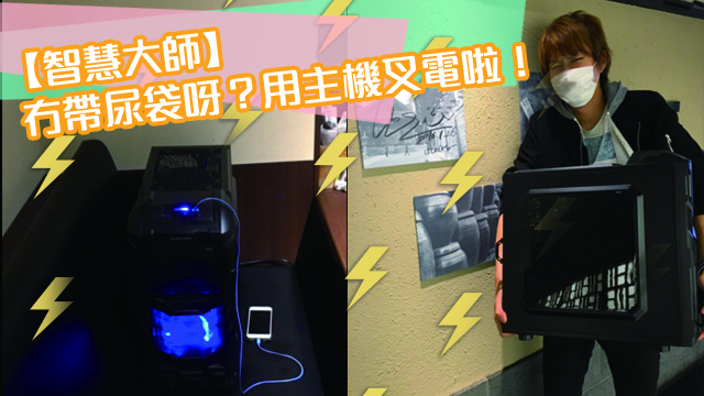 好彩個網友醒目,識得隨身帶住部電腦主機,咁樣只要有插頭嘅地方咪可以用嚟叉電囉!真係既方便又快捷呀!