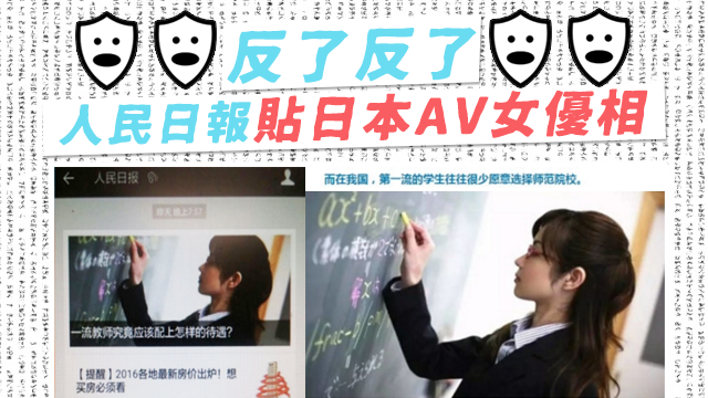 是咁的,有網民發現,《人民日報》噚日出咗篇文叫《一流教師究竟該配上怎樣的待遇》,入面張配圖真係一流,因為竟然係日本嘅AV女優青木麻奈呀!