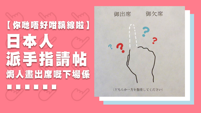 有個日本網友收到一張結婚請帖,入面張回條好有創意咁樣係叫人畫隻手指指住出席定唔出席喎,不過呢位網民睇睇下覺得有啲唔對路......