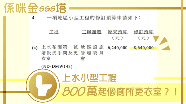 一個更衣室都要成800幾萬,可能高鐵超支咁多都係因為驚大家小便要排隊所以起多幾個廁所咋。