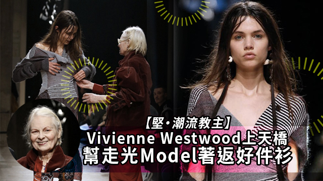 就喺呢個時候,Vivienne Westwood親自行上天橋,幫佢著返好件衫,笑咗一笑,然後就頭也不回咁坐返低喇!
