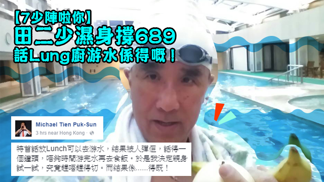 嗱嗱嗱,游3分鐘都叫做咗運動,身體應該係健康咗嘅,係一班網民睇唔出689一番嘅用心良苦啫!身為大腦細嘅田二少見到冇人欣賞689嘅苦口婆心,一心護主嘅佢梗係即刻9衝出嚟7,身體力行話Lung廚游水係得嘅!