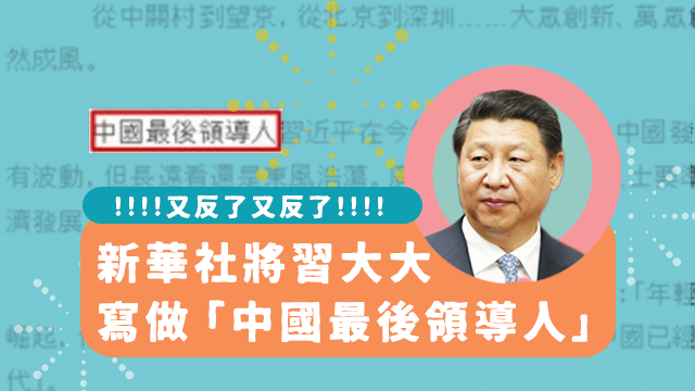 幾時先可以畀習大大唞下呀?冇幾耐前先有官媒勸習大大落台,早幾日又話用錯日本列車喺「中國夢」廣告度,而家新華社又話將習大大寫做「中國最後領導人習近平」。