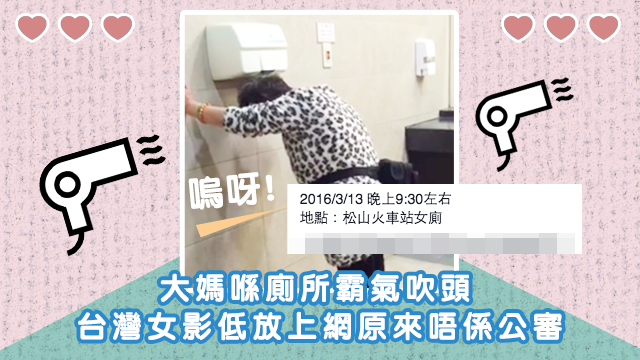 有位網民上載咗一條片,係呢位大媽紥行晒馬咁用個風筒吹頭,相當之有霸氣~ 原來佢係想講清潔人員好辛苦,同埋擔心佢冷親呀!