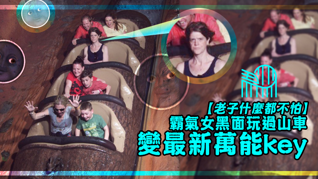 黑面行路跑步食飯講嘢毛毛就見得多,但係黑住面玩過山車毛毛就未見過喎。呢位女士淡定嘅表現,又震驚咗七十億人喇。