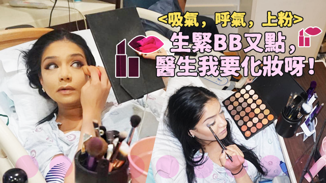 佢話喎,如果遇到陣痛嘅時候就會停一停,到陣痛過咗先會繼續化,仲話帶去醫院啲化妝品都係佢平時最鍾意嗰啲嚟㗎......嗱嗱嗱,話口未完,佢又痛喇,今次仲痛到要由老公豬出手幫佢上粉?~唉,到底女人為靚,可以去到幾盡?