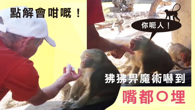 毛毛9估,隻狒狒應該係第一次睇人變魔術,當佢心諗呢個人做乜9喺佢面前係咁揚嚟揚嚟去嘅時候,突然間!個魔術師一揮手就震驚咗13億狒狒喇!