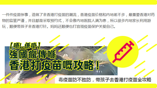 是咁的,話說最近強國山東發生咗單黑心疫苗嘅事件,有超過200萬支嘅問題疫苗流出咗市面。冇針打咁點算好呢?一班好聰明嘅強國人就諗到,強國冇,咪落香港搶囉……阿sor99ly,I mean係去香港打呀。一篇篇嘅香港打疫苗攻略仲喺網上瘋傳?!