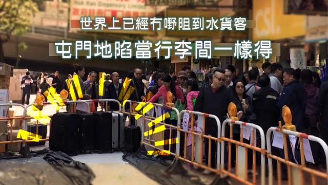 地陷咪地陷囉,冇有怕!就算圍封咗要重鋪地面,都一樣阻唔到水貨客要擺喼嘅決心!放埋啲寶貝入圍欄入面,咪唔怕畀啲行路唔帶人嘅腥港人對腳撞到呈囉,咁善用空間嘅方法都諗到,水貨客真係腥港嘅大恩客呀!
