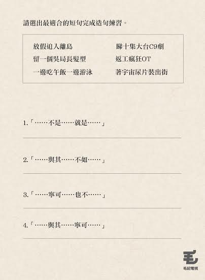 毛毛都受到呢個未來大作家啟發,諗咗啲短句畀大家玩填充呀!你哋練習成點先?