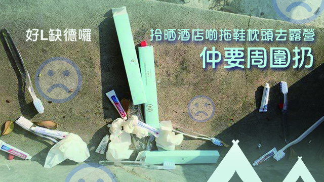 唉,搞到啲地方污糟晒,香港嘅郊區真係多得呢啲人唔少呀!露營露得咁爽皮,扔到周圍都係垃圾,難為之後嘅人要喺垃圾堆中露營呀,其實去完郊外地方袋返自己啲垃圾走是常識吧,唉不如你都係返返去住酒店啦!