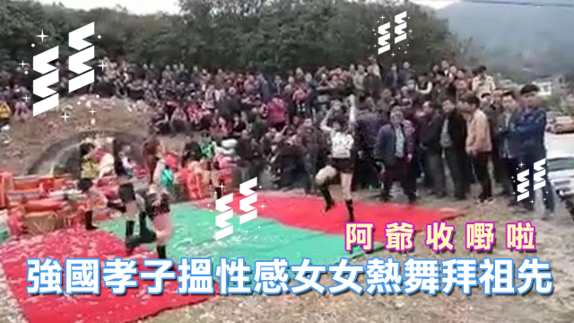 不過偉大嘅強國一早已經打破咗傳統嘅思想框框,燒紙紮祭品都已經表現唔到佢哋滿滿嘅孝心,梗係要搵埋一班性感女女喺墳前勁歌熱舞咁,先夠孝心㗎嘛!