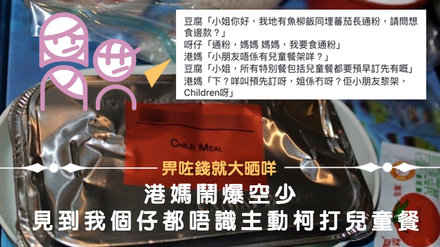 唔係講笑,呢位港媽真係幾有老佛爺出巡嘅霸氣,講嘅說話仲有幾分「見到我個皇帝仔仲唔識下跪」嘅味道?,可惜人哋係空少,唔係你奴才呀,唔會見到你個皇帝仔就會有兒童餐自動奉上㗎!其實人哋都係打份工嘅啫,想人serve得自己好啲,都要你deserve先得嘅!