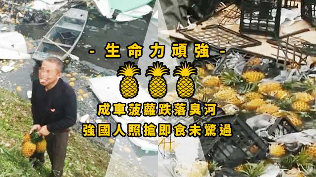 喺強國發生車禍最緊要係咩呀?唔係睇下有冇傷者,而係睇下有咩執啦係咪先。嗱有圖有真相㗎,你睇下啲菠蘿經過啲臭水加持過之後,係幾咁吸引,幾咁有光澤?又難怪成班強國人狗衝爭住去7,吖I mean係爭住去搶嘅。
