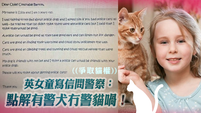 嗱我哋唔好理啲偽﹒警犬先,而家講緊啲堅﹒警犬呀下!係咯,到底點解得警犬,冇警貓呀警牛呀其他動物份嘅呢?公平咩!英國有個小妹妹就睇唔過眼(好似係),特登寫咗封信去問清楚警察叔叔呀~