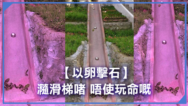 有台灣網民就喺公園影到呢條疑似滑梯,中間竟然有幾粒大鋼珠喺度呀!一嘢瀡落去你仲唔變bombom爆丸人呀!真係隔住個mon都feel到赤赤痛……雖然毛毛話就話什麼鬼都不怕啫,但係叫我玩命,我都會淆㗎嗚嗚!不過都有網民話呢條應該係排水道嚟,唔係滑梯喎。